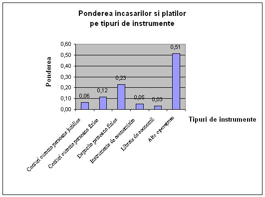 Din Tabelul 2, se observa ca pe tipuri de instrumente o pondere insemnata o detin operatiunile persoanelor fizice si indeosebi cele privind constituirea de depozite.