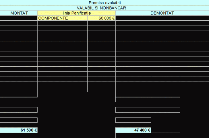 o Verificarea cuprinderii in documentele justificative (CF, contabilitate, etc.), sa nu se dubleze (drum de acces cuprins ca dotare a principalului + independent ca pozitie distincta intabulata, pod rulant si centrala termica cunatificate in potentialul de inchiriere dar cuprinse separat ca dotari nonimobiliare, etc. )
