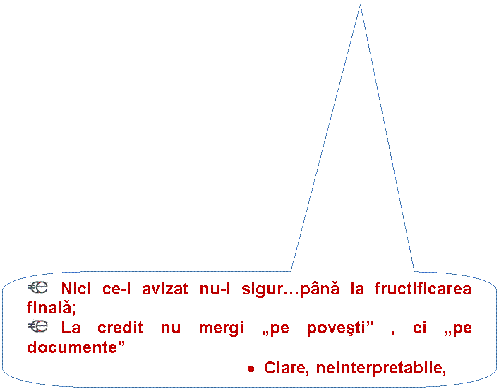 o Cu atat mai mult daca depinde de acelasi debitor (devenit, intre timp, din "cel mai trasparent si corect partener" in "cel mai neprietenos si de neinteles vecin", detinator al atuurilor si piedicilor de valorificare)!: Debitorul sa fie "la mana finantatorului" (care se bazeaza in caz de necesitate pe valorificarea ei pentru acoperirea debitelor) si nu invers
