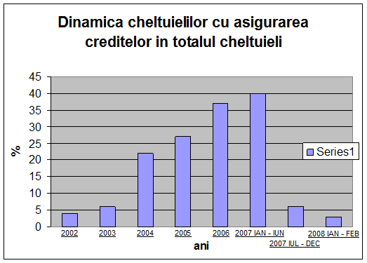 BCR - Din acest tabel se poate desprinde foarte bine dinamica cheltuielilor cu asigurarea creditelor in totalul cheltuielilior bancii, trend ascendent mentinut ca urmare a acordarii unui numar tot mai mare de credite persoanelor fizice, dar si a aparitiei unor produse noi, ceea ce a facut ca la data rezilierii contractului , acestea sa reprezinte 40% din cheltuieli.