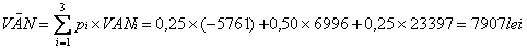 Preturile de vanzare (PV) sunt in lei, deci si valorile lui VAN sunt exprimate in lei, si nu in procente, ca la rentabilitati.