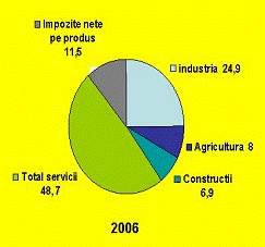 Produsul intern brut, pe primul semestru al anului 2006, a crescut intr-un ritm sustinut de 7,4%, la finele anului prognoza fiind de 6,7%, pe seama maririi volumului de activitate, cu deosebire in constructii si sectorul tertiar, in suma absoluta acesta situandu-se la 335,9 miliarde lei. Pentru anul 2007 produsul intern brut a crescut cu 6,4%, pe seama maririi volumului de activitate, cu deosebire in constructii si servicii, atingand la finele anului 381,9 miliarde de lei.