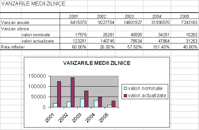 Cifra zilnica a vanzarilor a inregistrat o tendinta de crestere in primii 2 ani. In termeni reali, evolutia a fost ascendenta in perioada 1998- 1999 si descendenta in perioada 2000-2001.