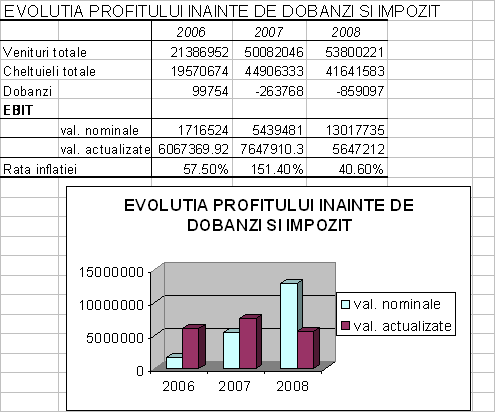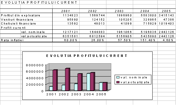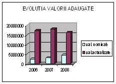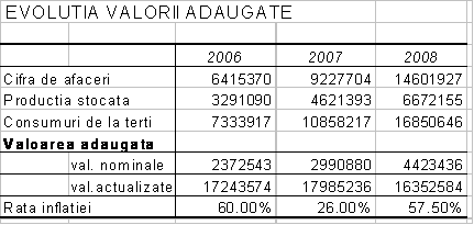 Se observa ca in cazul studiat valoarea adaugata s-a mentinut la un nivel relativ constant in termeni reali.
