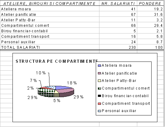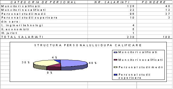 S.C. PANA PAN S.A. are 230 de angajati, cu functii si calificari corespunzatoare, definite in fisa postului.