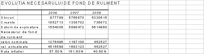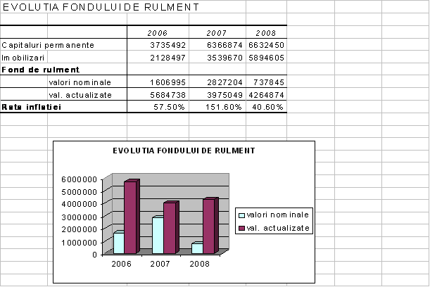 Evolutia fondului de rulment evidentiaza o crestere a acestuia, urmata de o usoara scadere. Totusi, valoarea sa se mentine pozitiva, in concordanta cu cerintele gestiunii financiare. (O parte din capitalurile permanente trebuie sa acopere nevoile ciclice - temporare - reinnoibile permanent in cadrul ciclurilor de exploatare ale intreprinderii).