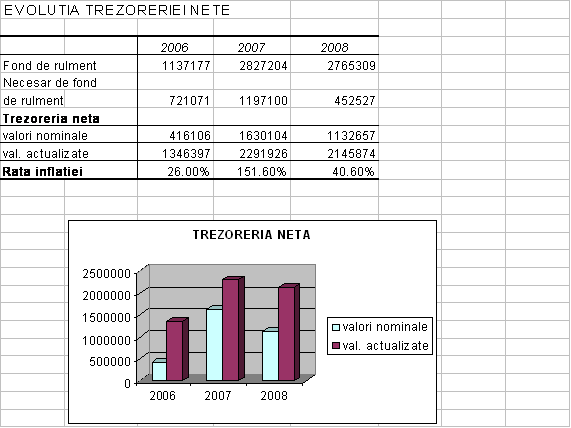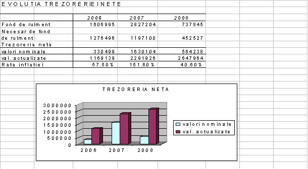Se observa ca trezoreria neta are valori pozitive, in concordanta cu cerintele gestiunii financiare. Marimea sa variaza de la un an la altul, in functie de evolutia activitatii societatii.