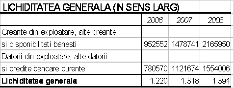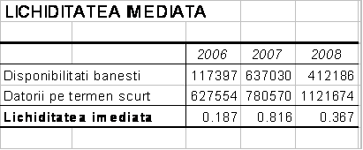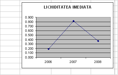Lichiditatea imediata va inregistra o evolutie relativ constanta, cu exceptia anului 2007, in care sumele depuse de actionari in contul maririi capitalului social vor determina cresterea sa accentuata. In anul urmator, aceste disponibilitati vor fi folosite pentru activitatea curenta si de investitii a intreprinderii.