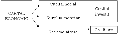 Sursele de constituire ale capitalului economic sunt: capitalul social (resurse proprii), surplusul monetar (resurse generate) si resursele externe (resurse atrase).