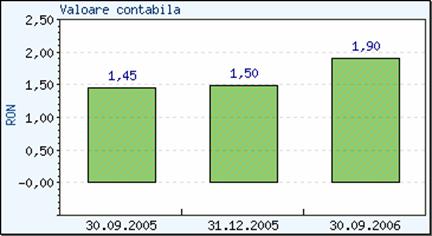 Ca formula de calcul, valoarea contabila este raportul intre capitaluri proprii si numarul actiunilor emise, astfel pentru 9 luni/2006,