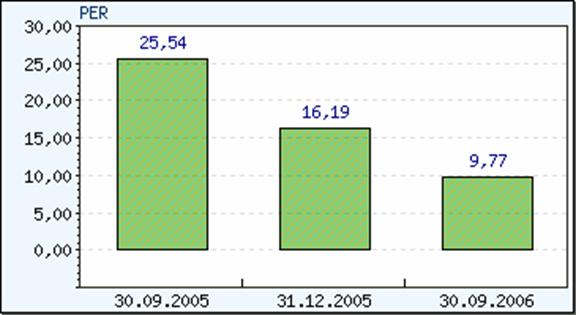 Sub forma grafica, acest indicator, se prezinta astfel. Dupa cum se poate observa, comparativ cu perioada similara a anului 2005, valoarea indicatorului a scazut, ceea ce indica actiuni subevaluate, fata de perioada similara cand erau supraevaluate.