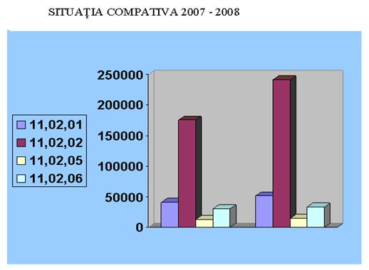 In tabelul urmator se redau, comparativ, sumele alocarilor din T.V.A pe anii 2007 si 2008.