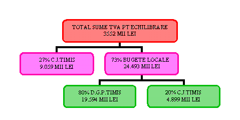 La nivelul judetului Timis, pentru anul bugetar 2007 , prin Legea nr.486/2006 a bugetului de stat pe anul 2008 s-au repartizat urmatoarele sume defalcate din T.V.A.