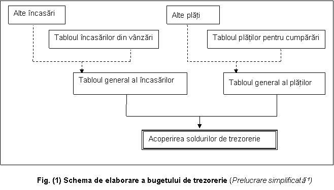 In opinia profesorului Iuliana Tugui, "bugetul de trezorerie este o situatie previzionala intocmita, in general, lunar, privind incasarile si platile unei unitati, o anticipare a echilibrelor intre nevoile de resurse pentru exploatare si resursele proprii si imprumutate" [4]. Acest echilibru are in vedere atat cuantumul fluxurilor, cat si periodicitatea sau ritmul in care vor avea loc. "Astfel, bugetele anuale de investitii, bugetele operatiunilor financiare si ale celor de exploatare stau la baza intocmirii bugetelor de trezorerie pentru diferite perioade, influentand incasarile, platile si soldul lor. La randul lor, aceste instrumente de previziune a trezoreriei isi aduc contributia la realizarea celorlalte activitati ale intreprinderii prin asigurarea in timp a fondurilor necesare" .