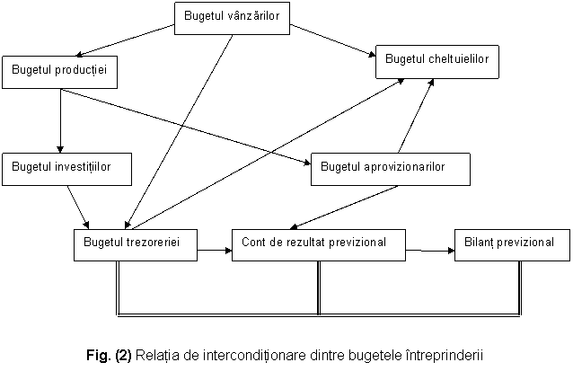 Gestiunea bugetara transforma deciziile luate in programe de actiune concreta, prin intermediul bugetelor, fiind in acelasi timp un sistem de gestiune previzionala pe un anumit termen. La randul lor, bugetele sunt repartizate corespunzator principalelor functii din intreprindere si sunt ierarhizate astfel incat sunt dependente unele de altele, conform unor criterii si intr-o ordine clara. Spre exemplu, bugetul vanzarilor determina structura bugetului de cheltuieli comerciale si a bugetului productiei, iar acesta din urma influenteaza bugetul aprovizionarilor si al centrelor de productie.
