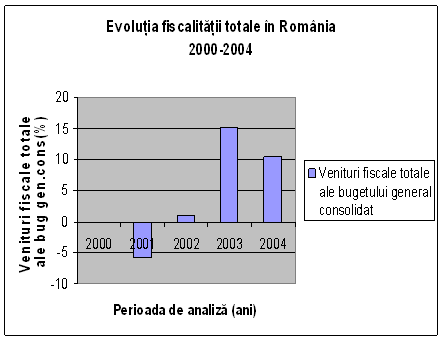 Evolutia fiscalitatii totale in Romania in 2000-2004 |