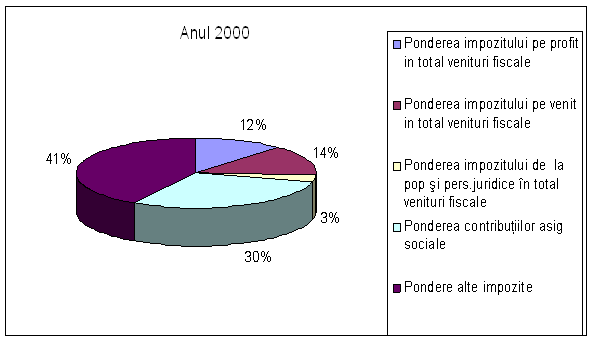 Se observa ca impozitul provenit de la populuatie si persoane juridice are cea mai mica contributie in fiscalitatea directa din Romania anului 2000.