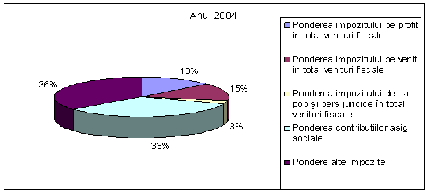 Structura fiscala, pe intervalul 2000-2004 este ilustrata in tabelul nr.5 din care se poate observa ponderea aferenta fiecarui tip de impozit direct.