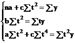 Aplicand metoda celor mai mici patrate obtinem sistemul de ecuatii normale: