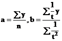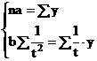 Parametrii a si b, in conditiile metodei celor mai mici patrate se determina rezolvand sistemul de ecuatii normale: