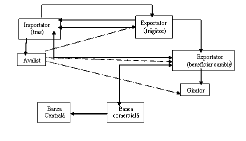 = scontarea cambiei de catre beneficiar la o banca comerciala;