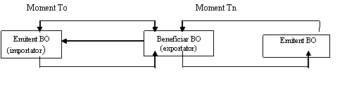 Ø relatia tragator - beneficiar: este o relatie complementara primeia, in cadrul careia tragatorul initial apare in calitate de debitor in a doua relatie, ca urmare a unei datorii dintr-un contract comercial sau de credit international.