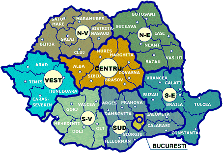 Dupa stabilirea si caracterizarea pe scurt a fiecarei zone care prezinta probleme economice si sociale, as dori sa fac cunoscuta si delimitarea pe regiuni a Romaniei, astfel incat: tara noastra este impartita in opt regiuni de dezvoltare, acestea fiind: Nord-Est, Sud -Est, Sud, Sud-Vest, Vest, Nord-Vest, Centru si Bucuresti-Ilfov. Regiunile de dezvoltare "nu sunt unitati administrativ teritoriale si nu au personalitate juridica"