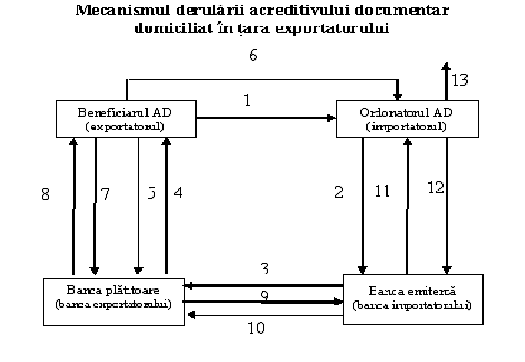 4. Beneficiarul (exportatorul) este cel in favoarea caruia se deschide A/D, banca emitenta angajandu-se la plata irevocabila in termenii si conditiile stabilite, conform contractului.
