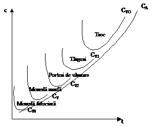 Aspectele relatate permit construirea unei curbe a costului total al schimbului, C, care cumuleaza cele doua categorii de costuri, curba care comporta un minim intr-un anumit punct (graficul 1).