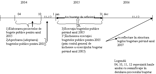 Fig. nr. 2. Desfasurarea procesului bugetar in timp cu referire la etapele legale de parcurs (potrivit legislatiei finantelor publice)