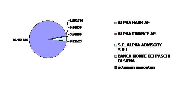 Capitalul social al Alpha Bank Romania S.A. la nivelul lunii decembrie 2007 este de 32,999,990 USD si 122,659,357,90 RON si 65,999,976.88. Acesta este detinut de 4 mari companii, cat si de alti actionari minoritari.Structura actionariatului este urmatoarea: