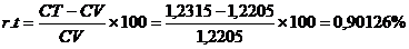 CT = cursul la termen : 1 euro = 1,2315 dolari