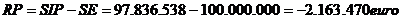 SE = suma de euro investita : 100 mil. Euro