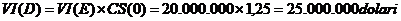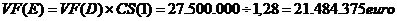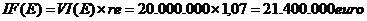VI(E) = valoarea investitiei initiale in active, exprimata in euro: 20 milioane euro.