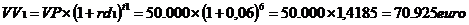 5. Un investitor doreste sa valorifice in depozite bancare suma de 50.000 euro, pe o perioada de 10 ani. Care va fi valoare viitoare(VV) a depozitului, stiind ca in primii 6 ani rata dobanzii la depozite a fost de 6%, iar in urmatorii 4 ani de 7%.