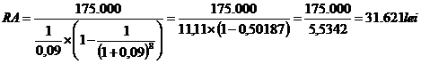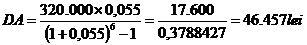 Un client doreste sa acumuleze intr-un depozit bancar suma, S, de 320.000 lei pentru a achizitiona un autoturism cu rulota. Perioada constituirii depozitului este de 6 ani, iar dobanda medie anuala de 5,5%, depunerile realizandu-se la incepul anului in sume egale.