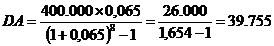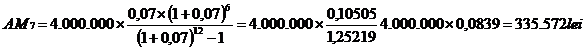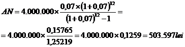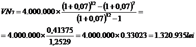 45. Un debitor efectueaza amortizarea semestriala a unui imprumut, At, catre o banca, de cate 650 de lei timp, n, de 8 ani, rata anuala a dobanzii fiind de 7%. Determinati valoarea a platii, a rambursarii totale, la sfirsitul perioadei, VR.