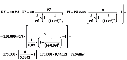 c). Se determina dobanda totala, DT, platita pentru imprumut: