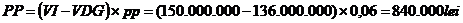 41. Calculati pierderea posibila (riscul) in cazul unei banci care a imprumutat un client pentru cumpararea unui autoturism in urmatoarele conditii: valoarea imprumutului, VI, 150 120 milioane lei; valoarea garantiei, VG, 170 130 milioane lei; rata de diminuare a garantiei, rg, 20% 25%; probabilitatea de realizare a pierderii, pp, 6% 5 %. Alegeti varianta corecta de raspuns dintre variantele enumerate mai jos.
