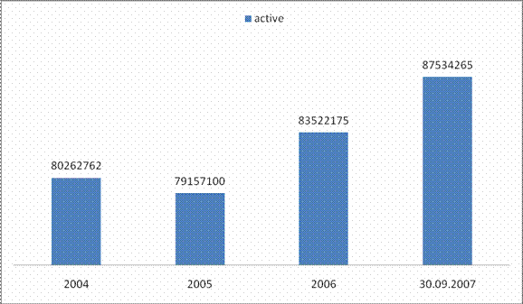 Se poate observa o crestere a activelor detinute de societate de la o valoare de 80262762 in anul 2004 la o valoare de 87534265 in anul 2007.