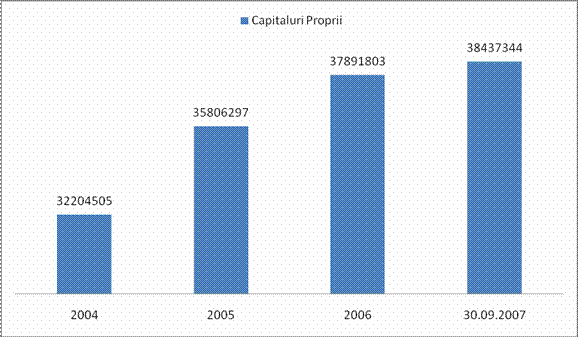 Conform fig.3.4 se poate observa o crestere continua a capitalurilor proprii de la 32204505 in anul 2004 la 38437344 in anul 2007.