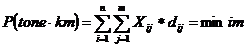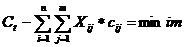 cij - cheltuielile de transport pe tona km de la centrele i la centrele j.