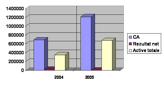 Cifra de afaceri are o evolutie crescatoare ajungand in 2005 la valoarea de 1213410 lei, inregistrand o crestere fata de anul 2004 de 521462.
