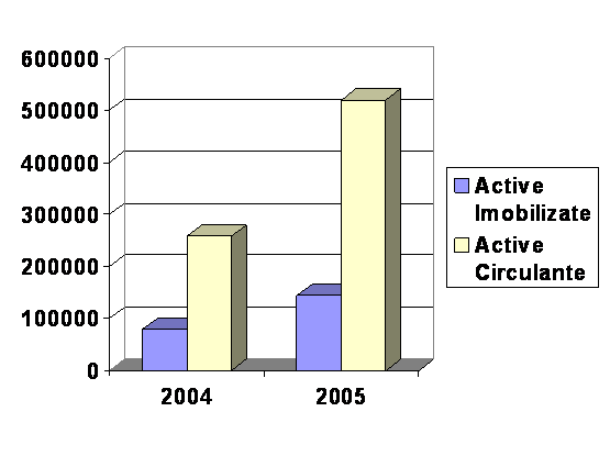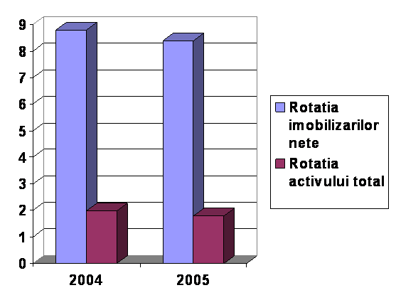 Rata activelor imobilizate = In/At masoara gradul de investire a capitalului fix. Nivelul ei este ridicat datorita ponderii mare a dotarilor cu echipamente tehnologice, utilaje si mijloace de transport. Nivelul acestei rate este influentat nefavorabil de inregistrarea cheltuielilor lunare cu amortizarea care diminueaza valoarile ramase ale activelor imobilizate, astfel incat rata scazand usor in 2005 la 21.48 %, fata de 2004 cand era de 22.59 %.