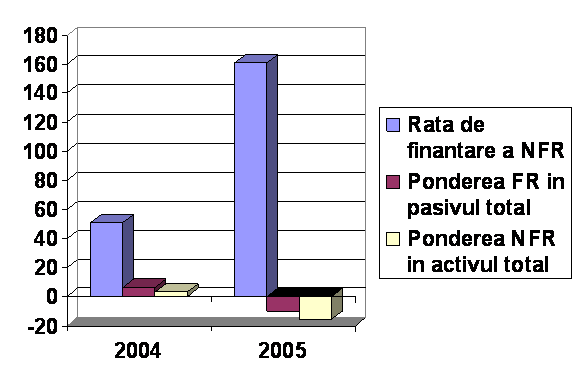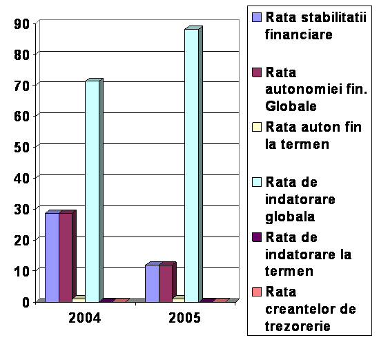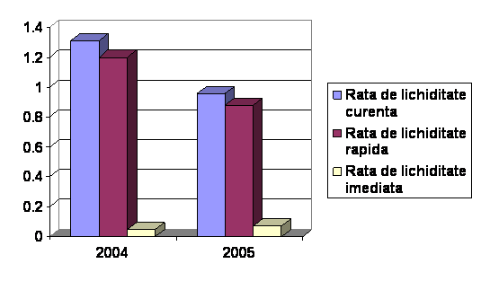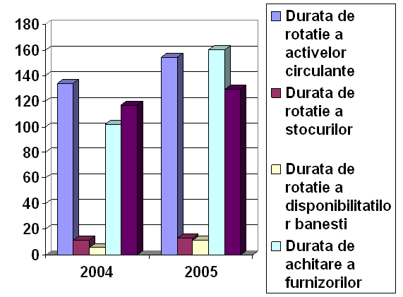 Rata disponibilitatilor = Db/At este influentata de raportul dintre durata medie de incasare a creantelor si durata medie de achitare a obligatiilor, care este nefavorabil. Nivelul acestei rate creste in 2005 fata de 2004 de la 3.04 % la 5.75%.