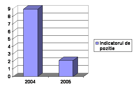 Indicatorul de pozitie se gaseste in anul 2005 in zona: "Risc mare de exploatare" in apropierea limitei inferioare.