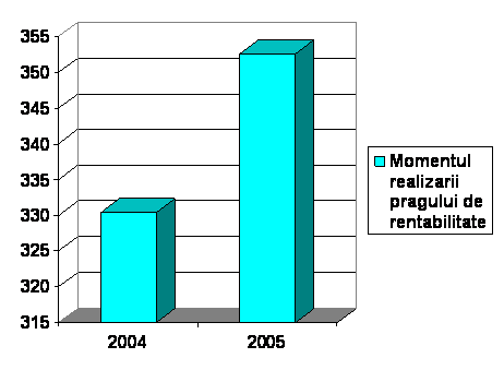 Pragul de rentabilitate de exploatare la nivelul societatii cunoaste o evolutie constanta reflectand mentinerea capacitatii de adaptare a rezultatului exploatarii la conditiile specifice in care societatea isi desfasoara activitatea. Nivelul sau in anul 2005 se incadreaza in zona: "Risc mare de exploatare".
