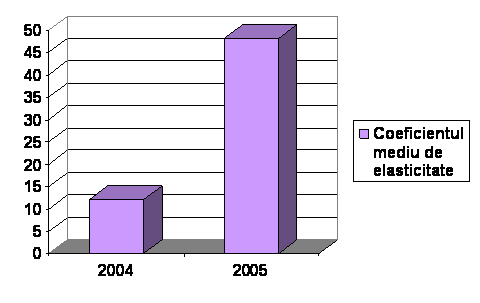Coeficientul de elasticitate inregistreaza o crestere astfel aflandu-se in zona: "Risc mic de exploatare", aproape de limita superioara decat de cea inferioara.
