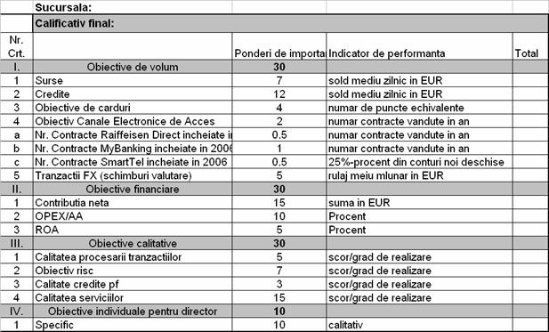 Cele prezentate mai sus releva stabilirea sistemului de obiective pentru Divizia Corporatii din cadrul Raiffeisen Bank de la cel mai inalt nivel pana la nivelul executantilor.