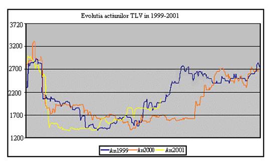 Graficul releva un anumit model de evolutie a actiunilor TLV in cursul unui an: o scadere destul de abrupta in primele luni ale anului, determinata de trecerea datei de referinta pentru majorarile de capital, urmata de o evolutie relativ stabila pana la jumatatea anului. Pana spre sfarsitul anului actiunile TLV intra pe un trend ascendent, cu pante mai mult sau mai putin abrupte. Un element foarte interesant care se poate observa pe grafic este ca evolutia din fiecare an a actiunilor se incadreaza in acelasi model stabilit de evolutia anilor trecuti. In lipsa oricaror alte elemente de distorsiune, se poate astepta ca actiunile TLV sa urmeze aceeasi evolutie si in anul acesta. Toate aceste evolutii nu sunt intamplatoare ci se datoreaza unui management bun adoptat ce a dus la: obtinerea unor rezultate foarte bune in ultimii ani si s-a urmat o strategie de alocare a profiturilor avantajoasa atat pentru dezvoltarea bancii cat si pentru actionari - includerea profiturilor in capitalul social si distribuirea de actiuni gratuite actionarilor. Un moment esential este primavara anului curent, dupa trecerea datei de referinta, cand caderea pretului va forma o buna oportunitate de cumparare pentru aceste actiuni si care vor putea fi vandute la preturi mai mari inainte de data de referinta cand se ating cresterile maxime.